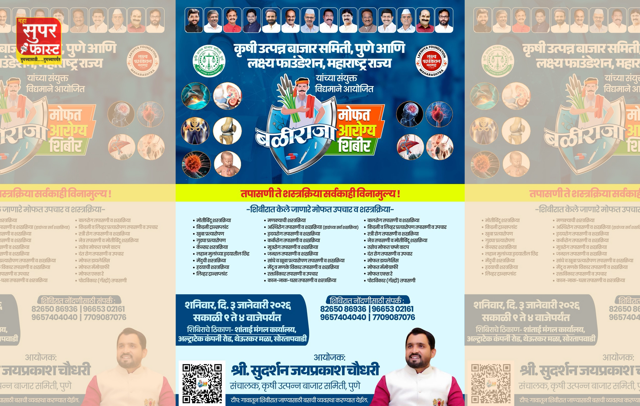 शेतकरी व नागरिकांच्या हितासाठी राबविण्यात येणाऱ्या या विशेष आरोग्य उपक्रमाचा लाभ जास्तीत जास्त लोकांनी घ्यावा, असे आवाहन सुदर्शन जयप्रकाश चौधरी यांनी केले आहे.