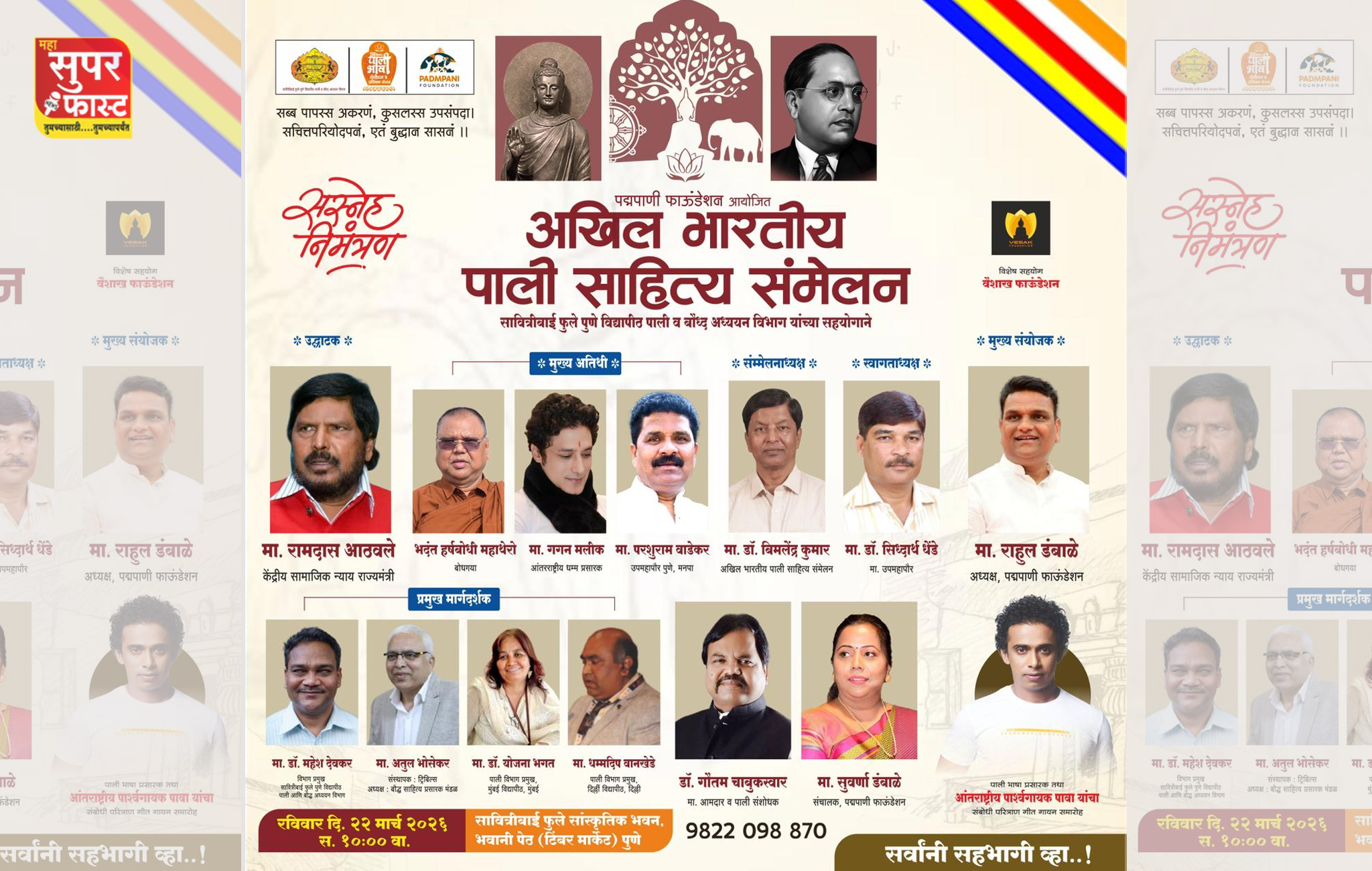 पुणे : पद्मपाणी फाउंडेशन आयोजित तसेच सावित्रीबाई फुले पुणे विद्यापीठाच्या पाली व बौद्ध अध्ययन विभागाच्या सहकार्याने अखिल भारतीय पाली साहित्य संमेलन रविवारी, २२ मार्च २०२६ रोजी पुण्यातील सावित्रीबाई फुले सांस्कृतिक भवन, भवानी पेठ (टिंबर मार्केट) येथे आयोजित करण्यात आले आहे. सकाळी १० ते सायंकाळी ६ या वेळेत हे संमेलन पार पडणार आहे.
