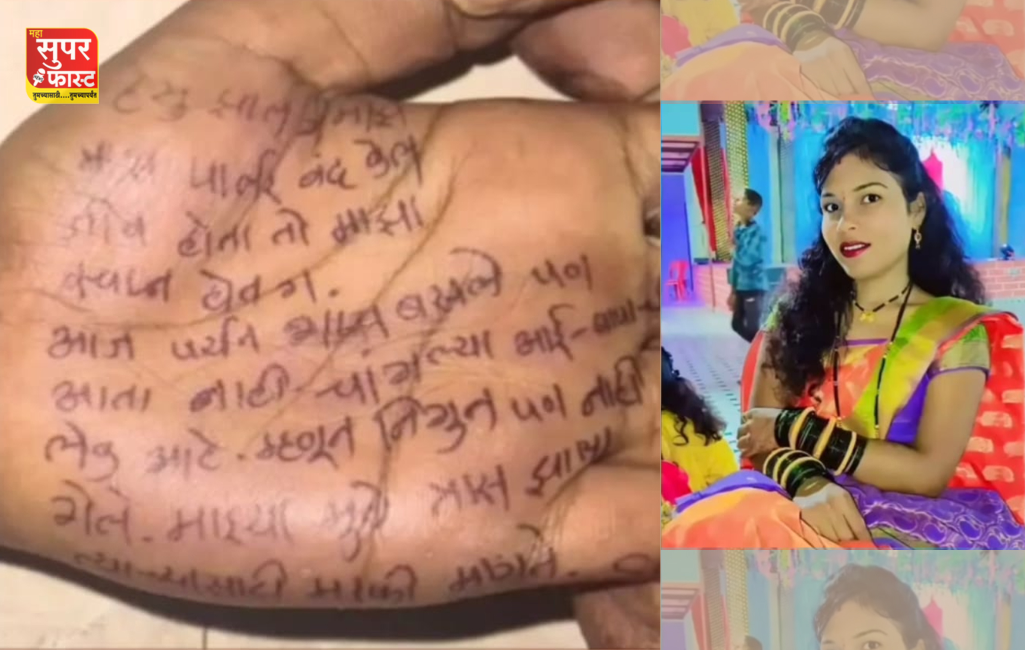 पायलने आपल्या तळहातावर सुसाईड नोटमध्ये पायल ने मृत्यूपूर्वी हसू झालं ग माझं, माझं पार्लर बंद केलं, जीव होता तो माझा… स्वप्न होतं ग… आजपर्यंत शांत बसले. पण आता नाही चांगल्या आई-बापाची लेक आहे. म्हणून निघून पण नाही गेले. माझ्यामुळे त्रास झाला त्यासाठी मी माफी मागते. सॉरी.