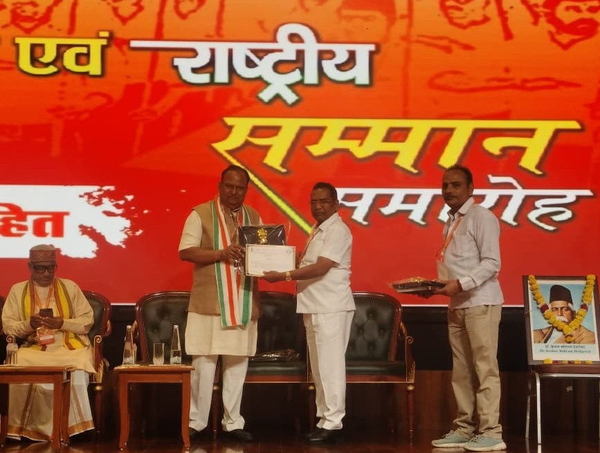 पुणे: राष्ट्रीय स्वयंसेवक संघ शताब्दी वर्षानिमित्त दिल्लीतील भारत मंडपम येथे डॉ. श्यामाप्रसाद मुखर्जी राष्ट्रीय विचार मंचतर्फे बारावे राष्ट्रीय अधिवेशन व हिंदू रत्न पुरस्कार वितरण सोहळा मोठ्या उत्साहात संपन्न झाला. या सोहळ्यात उरुळी कांचन येथील समाजसेवक, प्रवचनकार व दिव्यांग सेवक डॉ. रवींद्र भोळे यांना राष्ट्रीय पातळीवरील ‘हिंदू रत्न’ पुरस्काराने सन्मानित करण्यात आले. स्मृतिचिन्ह, शाल, मुद्रा, पुष्पगुच्छ व सन्मानपत्र असे पुरस्काराचे स्वरूप होते.