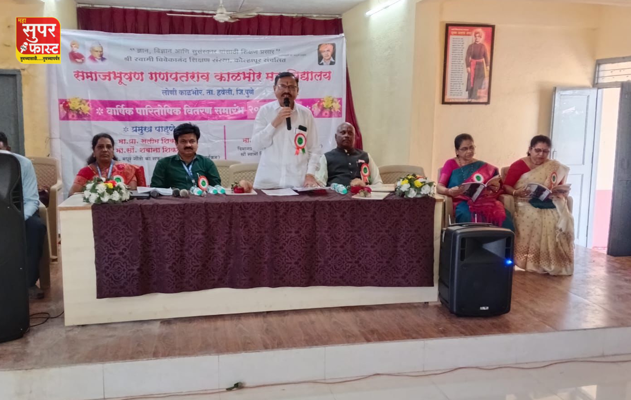 अध्यक्षस्थानावरून श्री स्वामी विवेकानंद शिक्षण संस्थाचे सहसचिव प्राचार्य सिताराम गवळी यांनी विद्यार्थ्यांना प्रोत्साहन देताना, पारितोषिक म्हणजे कष्टांचा जाहीर सन्मान असल्याचे नमूद केले.