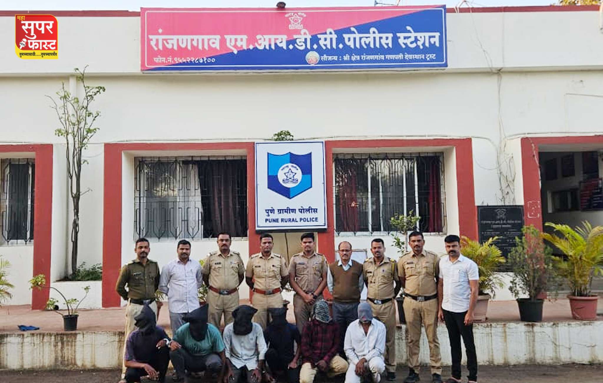 पुणे : रांजणगाव एमआयडीसी परिसरात दरोड्याच्या तयारीसाठी आलेल्या सहा जणांना पोलिसांनी कौशल्यपूर्ण कारवाई करत पकडले. रविवार, ९ डिसेंबर २०२५ रोजी रात्री सुमारे ११ वाजता ही कारवाई करण्यात आली.