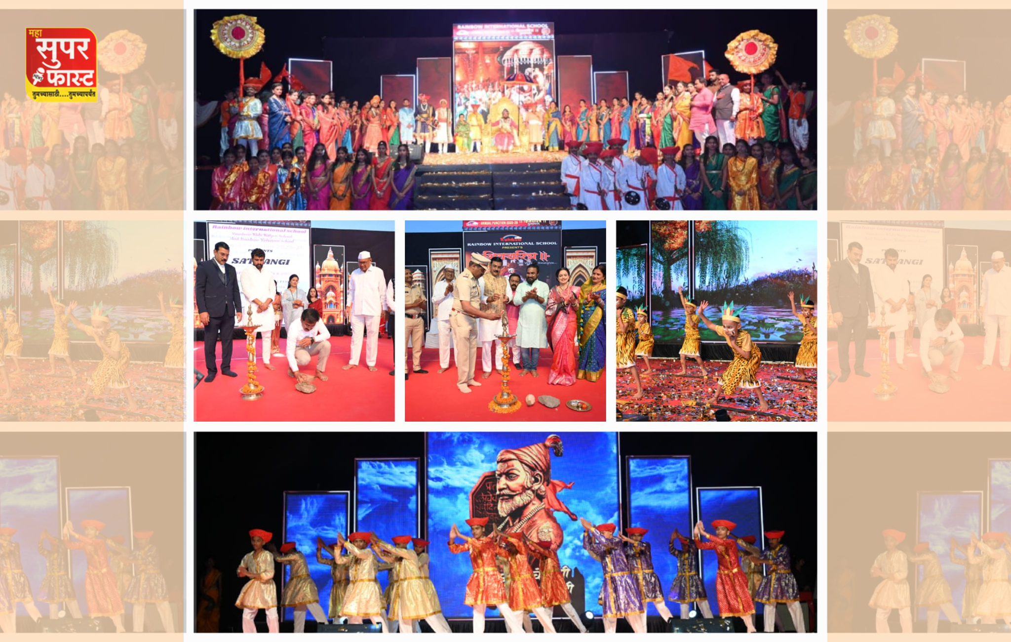 रेनबो स्कूलचे नृत्य शिक्षक अश्विन मनगुतकर यांच्या मार्गदर्शनाखाली विद्यार्थ्यांनी डोळ्यांचे पारणे फेडणारी नृत्ये सादर केली. संगीत शिक्षक कार्तिक गोरखे व विद्यार्थ्यांनी सुमधुर गायन सादर केले, तर संगीत शिक्षक शिवराज साने यांच्या मार्गदर्शनाखाली विद्यार्थ्यांनी तालबद्ध वादनाचे सादरीकरण केले. कराटे शिक्षक प्रफुल्ल गायकवाड यांच्या मार्गदर्शनाखाली विद्यार्थ्यांनी कराटेची चित्तथरारक प्रात्यक्षिके सादर करून प्रेक्षकांची मने जिंकली. कार्यक्रमाच्या संपूर्ण नेपथ्य व्यवस्थेची जबाबदारी कला शिक्षक दिपक शितोळे यांनी समर्थपणे सांभाळली.